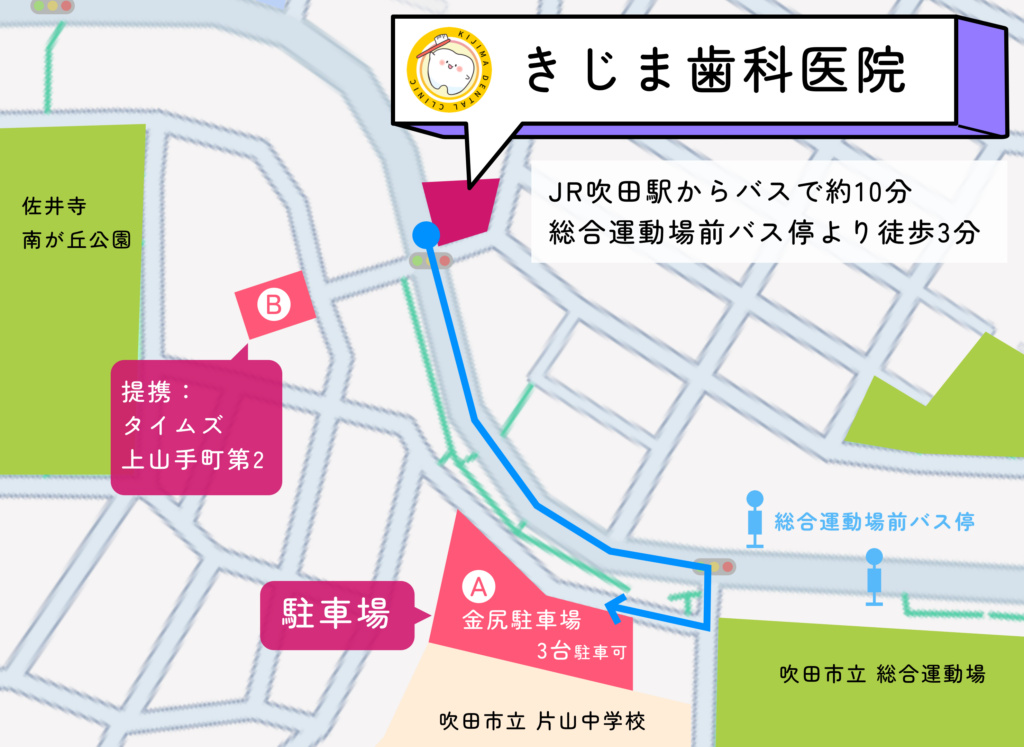 JR吹田駅からバスで約10分 総合運動場前バス停歩3分
