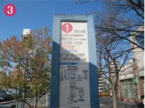 ❸1番のりばから2・11・15のいずれかのバスにご乗車下さい。
