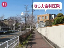 坂を登る方向へ歩道を2分程歩いて頂きますと、2つ目の信号の角に当医院がございます。