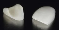 色合いの違うジルコニアを積層した物で作製するので透明感のあるグラデーションが付与でき、天然歯に近い風合いを再現できる。